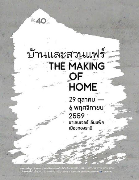 Find the idea to decorate your home at BaanLaeSuan Fair 2016 between October 29 - November 6, 2016 from 9.30 a.m. to 9 p.m. at Challenger Hall 1-3 Impact Muang Thong Thani.